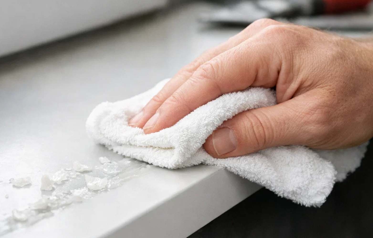 - Rimuovere i residui con spatola in plastica o panno.