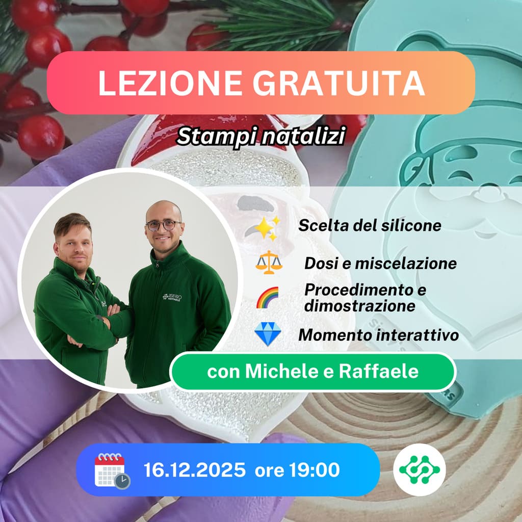 In questo webinar gratuito, “Stampi natalizi:🎄”, scoprirai come realizzare stampi homemade con processi semplici e risultati eccezionali. Imparerai a scegliere il silicone adatto, dosare i componenti per ottenere creazioni al top!