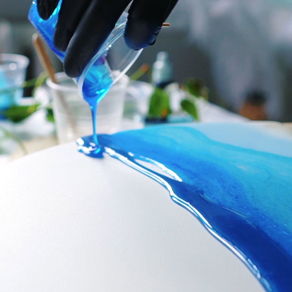 - Fissaggio e Protezione: Fissaggio di riempitivi come elementi decorativi, vetro, pietra, quarzo, e creazione di uno strato protettivo trasparente su creazioni.