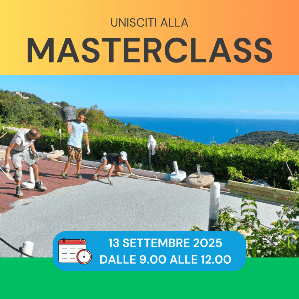 Unisciti alla nostra esclusiva masterclass dedicata alla realizzazione di pavimenti drenanti in ghiaia stabilizzata. Impara comodamente da remoto le tecniche avanzate per creare pavimentazioni esterne ed interne e tutti i trucchi e consigli dei nostri esperti.