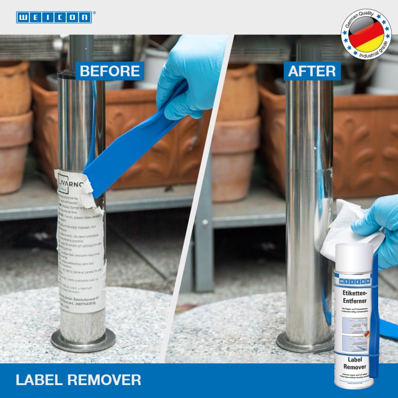 Il Distaccante per Etichette WEICON è uno spray professionale specifico per rimuovere etichette, adesivi e colle da plastica, vetro, metallo e superfici verniciate.