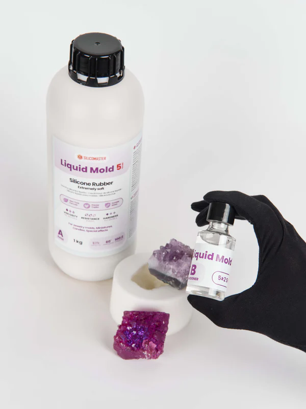 Liquid Mold 5 è la gomma siliconica più morbida della gamma ResinPro®, progettata per creare stampi elastici e ricchi di dettagli. Ideale per applicazioni in gioielleria, miniature, protesi, effetti scenici, modelli artistici complessi e dettagli delicati in resina e cera.