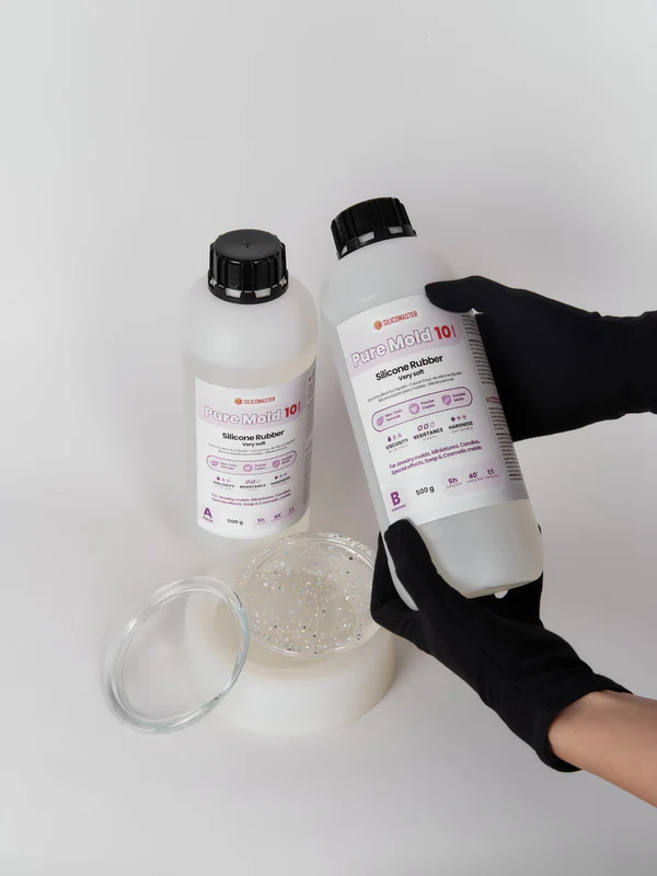 Compatibile con resina epossidica, poliuretano, cera, gesso e materiali leggeri, Pure Mold 10 è la scelta ideale per creare progetti unici e professionali.